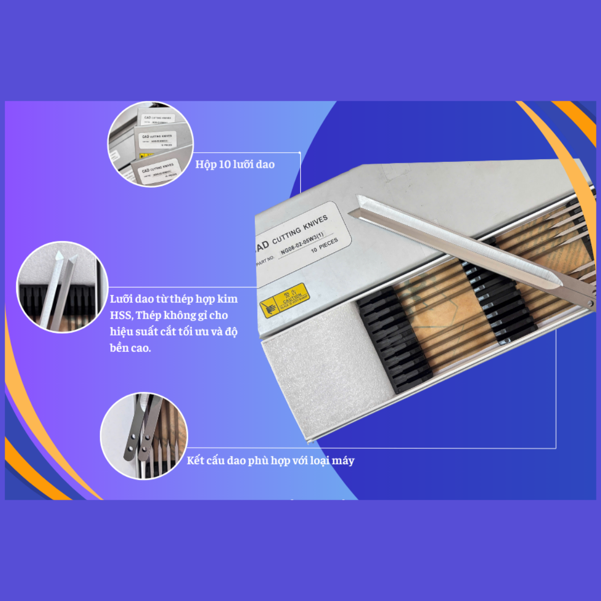 Dao máy cắt vải tự động được sản xuất từ thép hợp kim chất lượng cao, đảm bảo độ sắc bén và khả năng làm việc ổn định trong thời gian dài. Công nghệ mài lưỡi tự động giúp dao luôn đạt độ bén tối ưu, tạo ra đường cắt mịn, chuẩn xác và giảm tối đa sai số. Điều này không chỉ giúp tiết kiệm thời gian mà còn giảm hao hụt nguyên liệu. Theo tài liệu kỹ thuật từ Juki Corporation, việc lựa chọn đúng loại dao phù hợp với từng loại vải sẽ giúp nâng cao tốc độ, chất lượng cắt và kéo dài tuổi thọ máy.