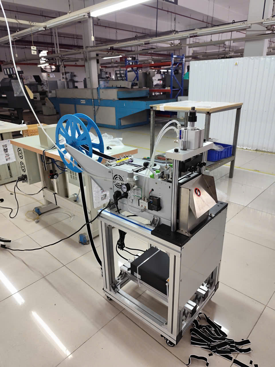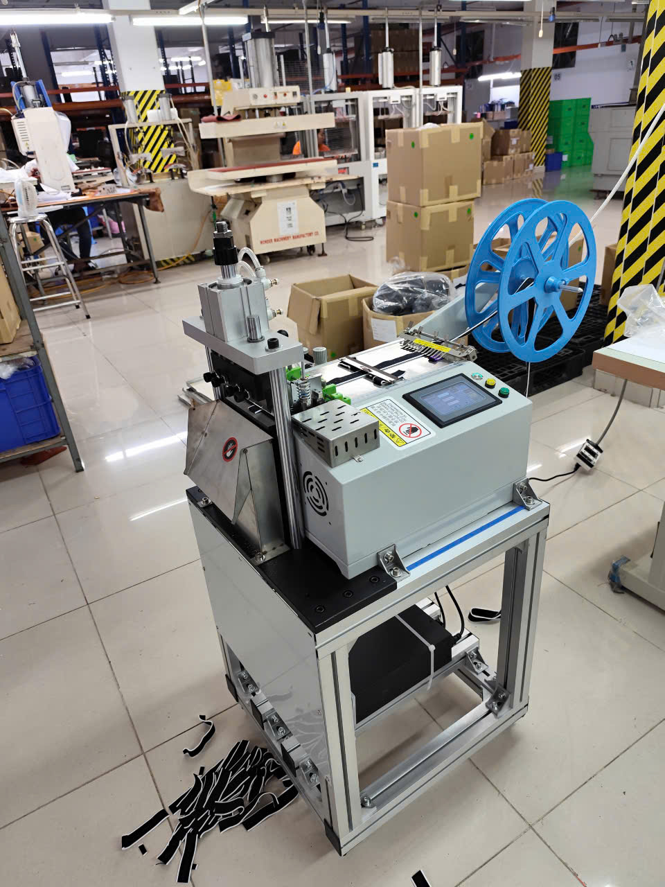 Máy Cắt Dây Sử Dụng Dao Sóng Âm (Ultrasonic Webbing Cutting Machine) là loại máy chuyên dùng để cắt dây đai, dây thun, dây viền, dây việt nam gọi chung là “dây viền – dây bo – dây nẹp”, thường thấy trong ngành may mặc, balo – túi xách, giày dép, rèm cửa, dây nịt, dây an toàn…