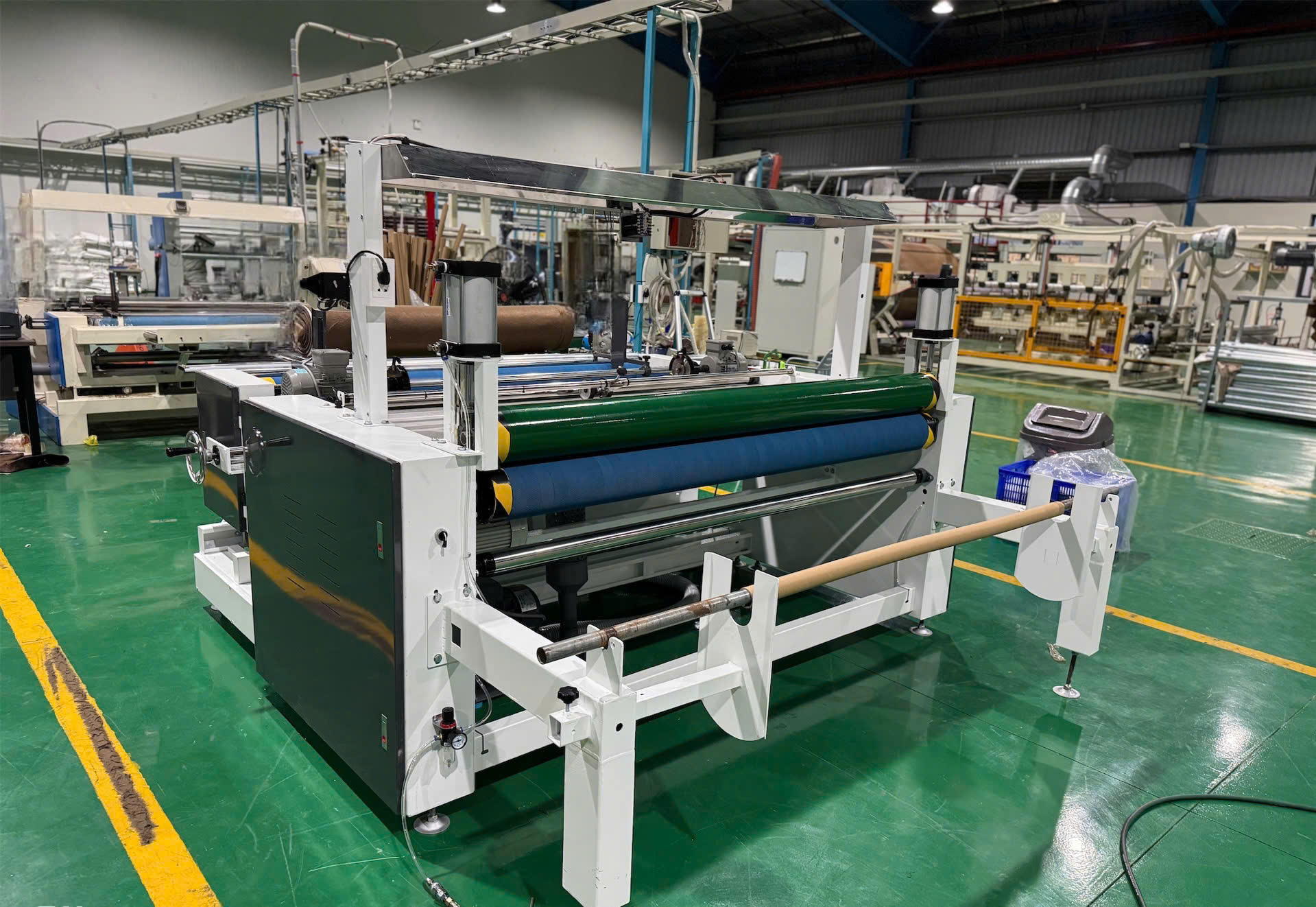 - Trợ lực xylanh hơi để kéo những cuộn vải lớn (có tải trọng lên đến 500kg/cuộn).
